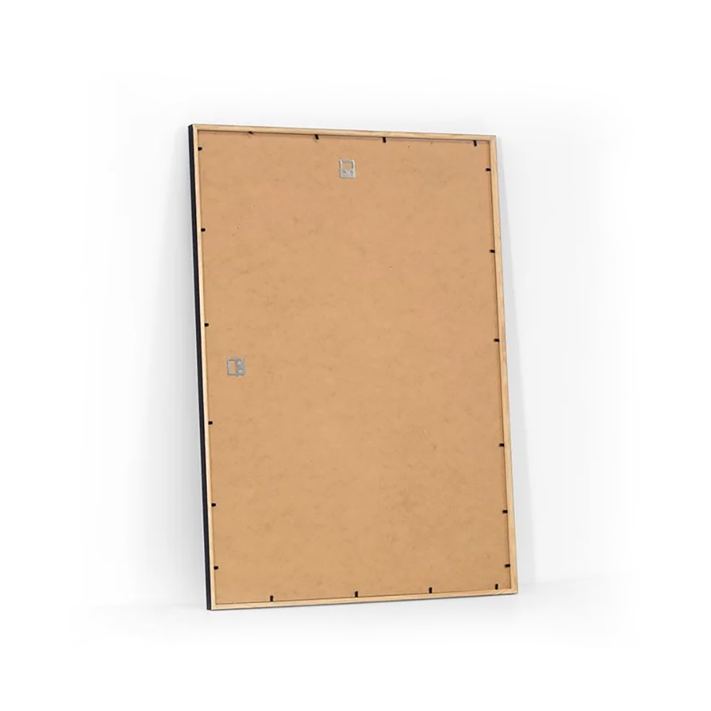 Rammen er udstyret med en tynd, let profil, der giver et moderne og enkelt udtryk uden at tage fokus fra selve motivet. Fronten er i let og brudsikkert akrylglas, som sikrer både sikkerhed og flot gengivelse af farver og detaljer. Bagpå er rammen udstyret med fleksible ophæng, så du nemt kan hænge den både lodret og vandret.