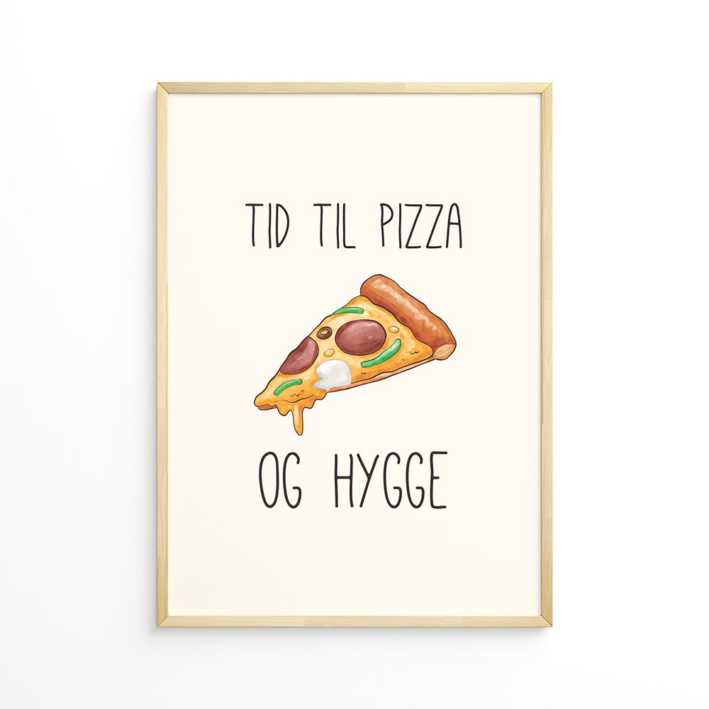 Plakaten passer perfekt i køkkenet, spisestuen eller som en sjov detalje i stuen. Den er ideel til pizzalovers, hyggeentusiaster eller som gave til en, der sætter pris på en god pizza og lidt humor.